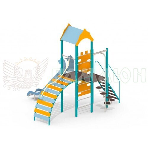Складається з: Майданчик з дахом 1 шт., Майданчик 1 шт., Гірка 1 шт., Сходи 1 шт., Дошка альпініста 1 шт., Радіальний міст з канатом 1 шт., Дугові сходи 1 шт., Шведська стінка 1 шт.