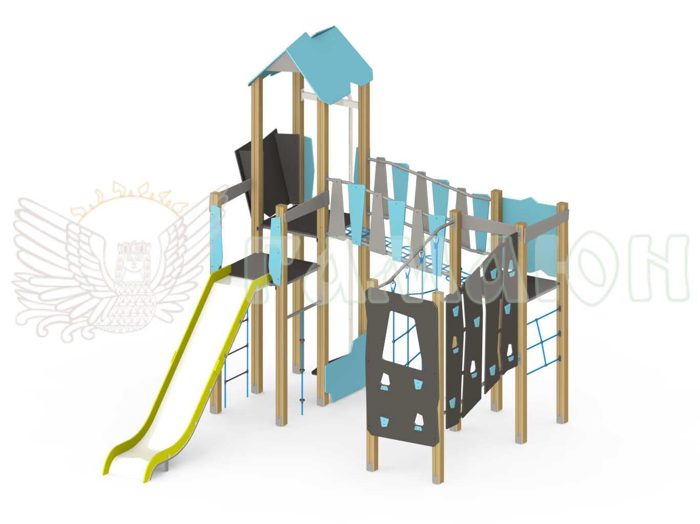 Складається з: Сходи - 1 шт., Гірка - 1 шт., Міст -1 шт., Майданчик, захищений дахом - 1 шт.
