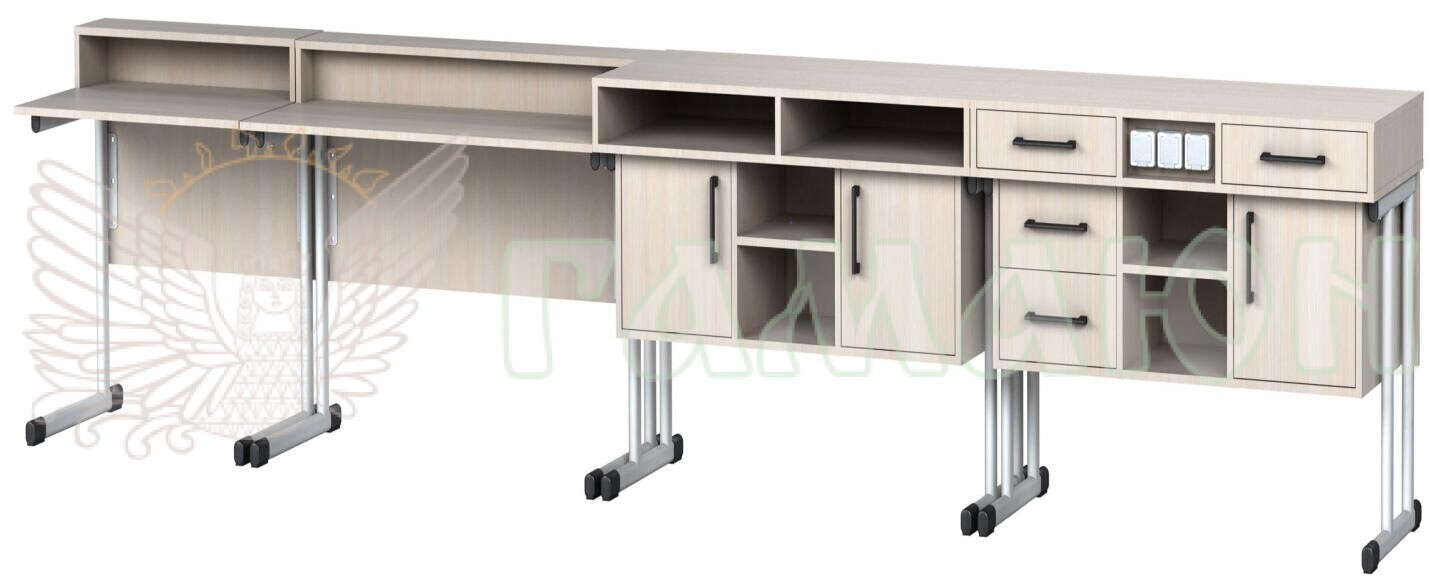 Комплект столів демонстраційних для кабінетів фізики та хімії складається з чотирьох елементів.