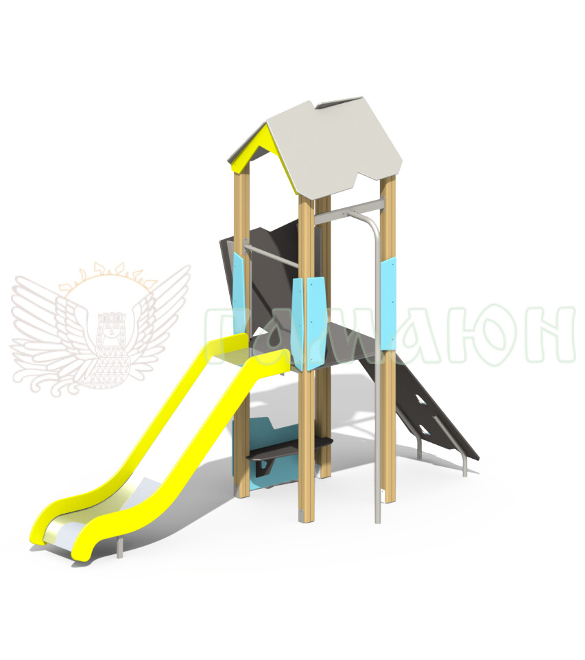 Комплекс призначений для розвиваючих ігор дітей у віці від 3 до 6 років. Безпечна дитяча гірка має захисну поперечину і бортики висотою 10 см. Майданчики обладнані захисними перекладинами. Ігровий комплекс виготовлений з дерева. Комплекс розрахований на велику кількість дітей, розвиває фантазію дітей, можливість проводити рольові ігри.