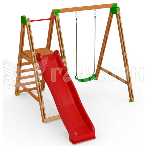 Складається з: Майданчик без даху 1 шт., Гірка 1 шт., Сходи 1 шт., Гойдалки 1 шт.,