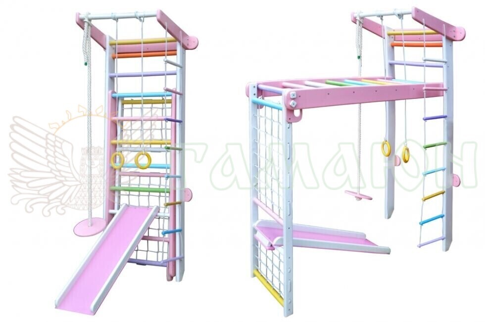Допустимі динамічні навантаження на перекладини шведської стінки і турнік – 100 кг, на мотузковий набір – 60 кг, на дитячу гірку – 40 кг, на рукоход – 50 кг.