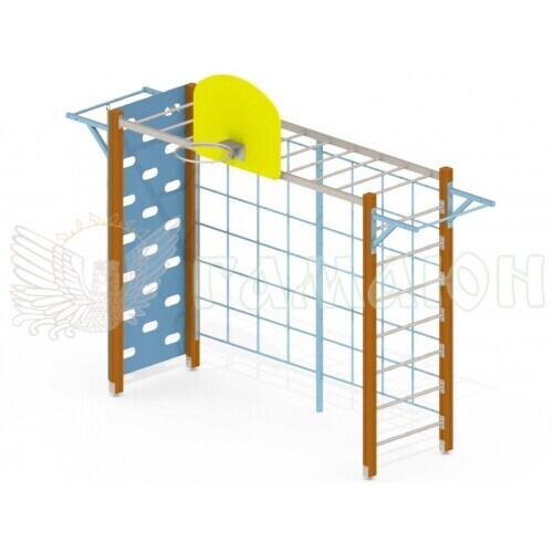 Складається з: Рукохід 1 шт., Канат 1 шт., Турнік 2 шт., Павутинка 1 шт., Стінка скелелаза 1 шт., Шведська стінка 1 шт.