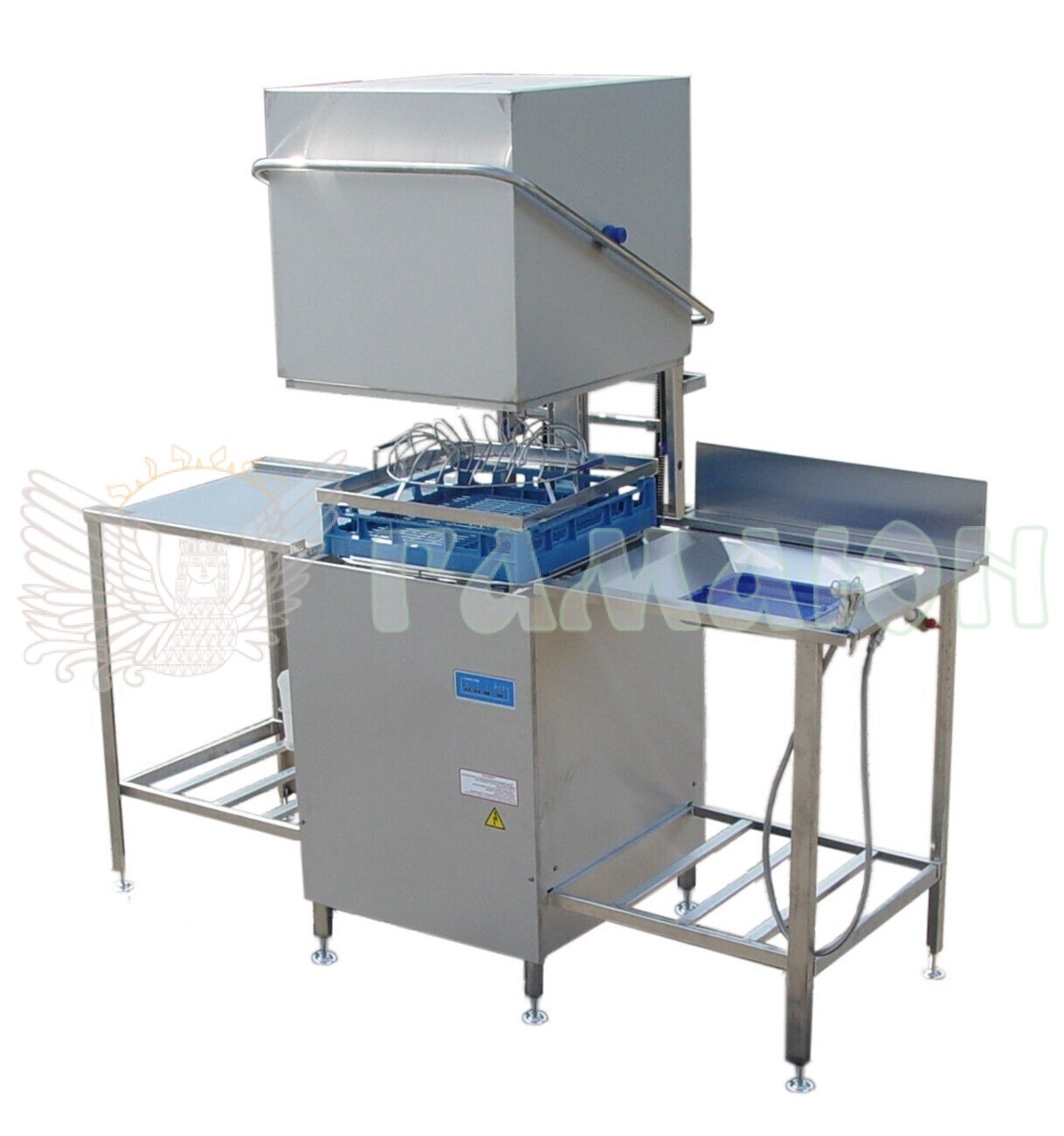 Машина посудомийна універсальна 700-01 призначена для миття в касетах тарілок, супових мисок, стаканів, столових приладів і підносів, розміром не більше 530х325 мм на підприємствах громадського харчування з кількістю посадкових місць до 50 із застосуванням миючих засобів. Машина виготовляється з електронним програмним управлінням.