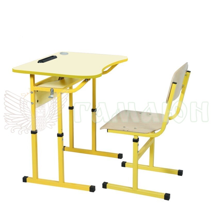 Комплект стіл учнівський 1-місний з регулюванням кута нахилу стільниці та полицею, ростова група №3-6 + стілець Т-подібний на квадратній трубі, №3-6
