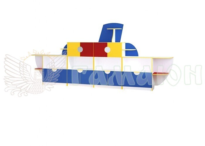 Дитяча стінка призначена для обладнання дитячого садка. Стінка складається із 4 секцій, скріплених між собою міжкорпусними стяжками. Меблі виготовлені з екологічно чистої ДСП товщиною 16 мм класу Е1, призначеної для виготовлення дитячих меблів. На торці нанесена ПВХ кромка товщиною 0,6 мм при високотемпературному режимі на кромкооблицювальному верстаті, що забезпечує максимальний захист країв від вологи та механічних пошкоджень. Базовий колір кромки – жовтий. Основні деталі корпусу за замовчуванням виготовлені з ламінованого ДСП білого, жовтого та синього кольорів, також можна використовувати ДСП зеленого кольору без подорожчання меблів. За бажанням дані кольору можна замінити будь-яким іншим кольором ДСП, у цьому випадку вартість буде розраховуватися індивідуально. Усі матеріали підтверджено сертифікатом якості.