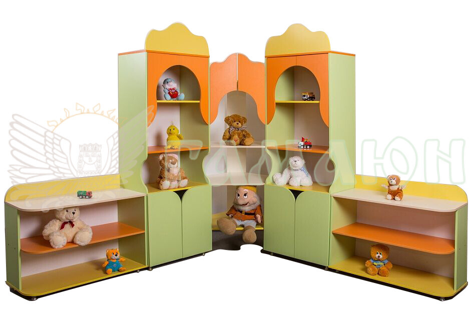 Полички та шафки дозволять розмістити все необхідне для гри та навчання.