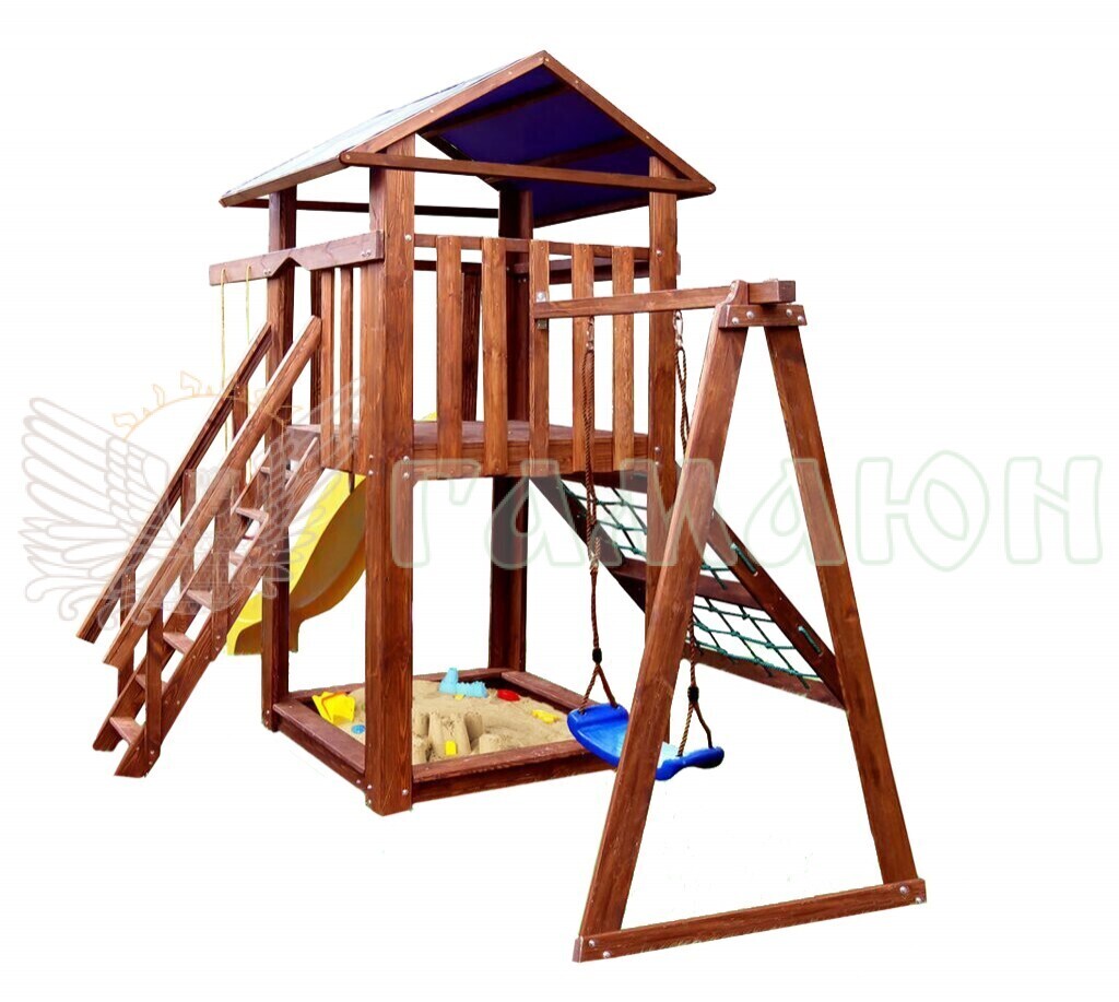 Ігровий будиночок, Пісочниця, Сітка, Гірка пластикова, Гойдалка 1 пластикова, Кільця 1 пара