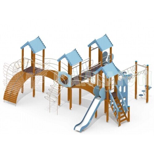 Складається з: Майданчик з дахом 4 шт., Гірка 2 шт., Сходи 1 шт., Гвинтові сходи 1 шт., Шведська стінка 1 шт., Радіальний міст з канатом 1 шт., Тунель 1 шт., Сходи зі скобами 1 шт ., Дугові сходи 1 шт., Дошка альпініста 1 шт., Рукохід 1 шт., Місток на ланцюгах 1 шт., Місток 2 шт.
