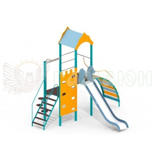 Ігровий комплекс розрахований для дітей віком 6-12 років. Спорудження продумано до дрібниць для безпечних ігор. Модель складається з двох майданчиків, одна з яких з дахом, радіального моста з канатом, шведської стінки і гірки. Для безпеки дітей майданчики обладнані перекладинами, а гірка – бортиками висотою 10 см.