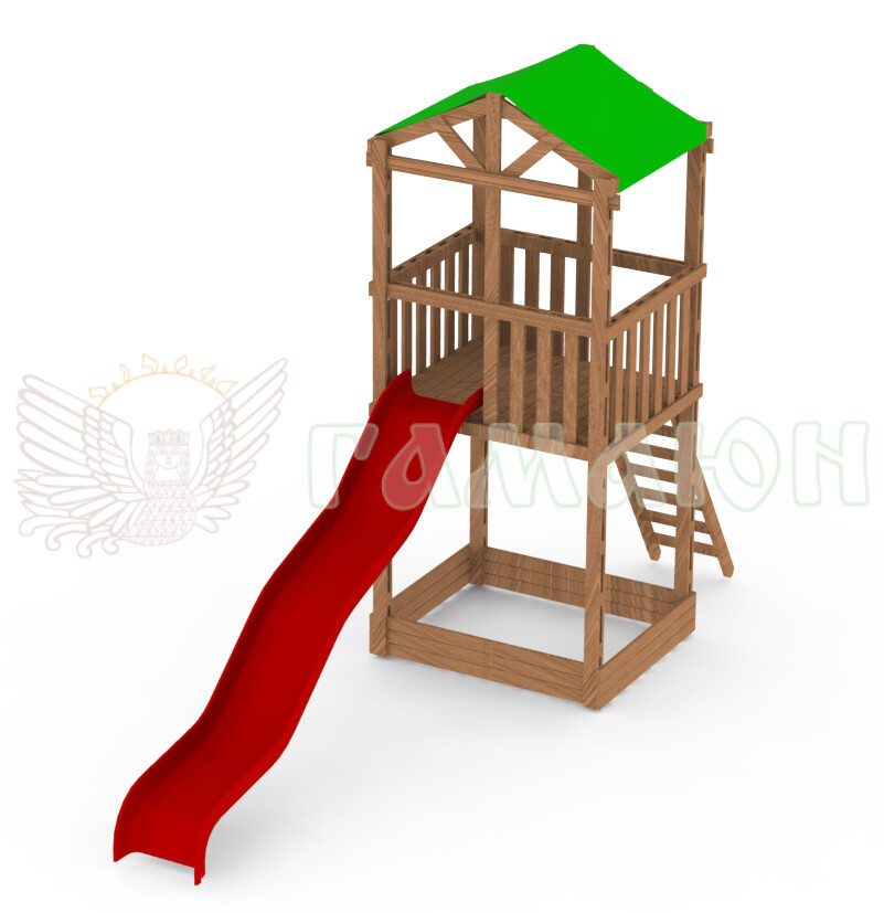 Складається з: Майданчик з дахом 1 шт., Гірка 1 шт., Сходи 1 шт., Пісочниця 1 шт., Лавочка 1 шт.