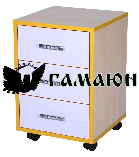 Тумба учителя з шухлядами призначена для обладнання навчальних приміщень. Має 3 висувні шухляди та встановлена на коліщата.