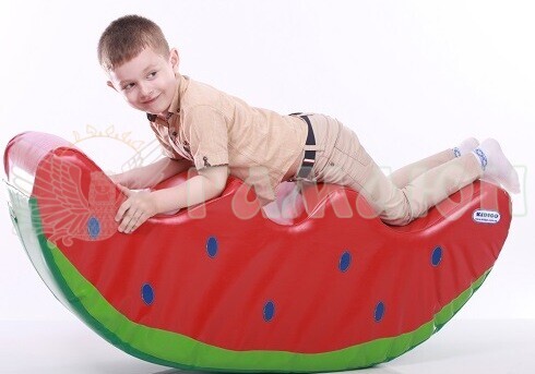 Гойдалка призначена для хитань однієї дитини. Гойдалка «Кавунчик» сприяє розвитку рухової активності у дітей, стимулює вестибулярні функції, зміцнює м’язи. Зроблена качалка з щільного поролону і обтягнута м’якою, приємною на дотик ПВХ тканиною, яка, до того ж, легко миється.