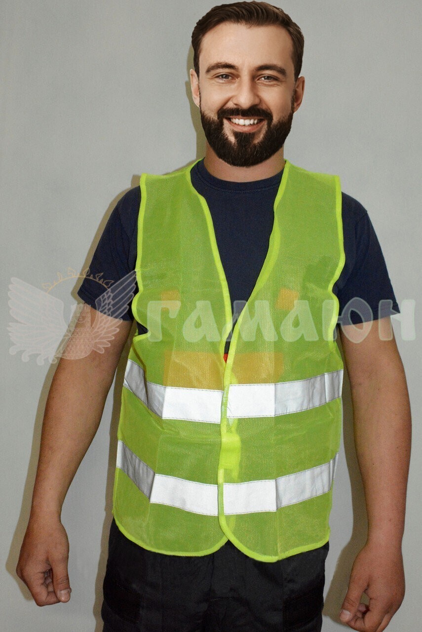 Яскравий жилет робить людину помітною на значній відстані в будь-який час.