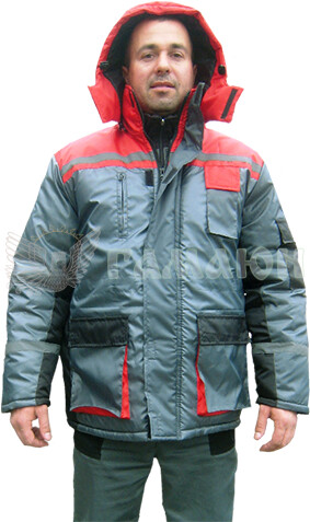оснащена вітрозахисною планкою на липучках, знімним, утепленим капюшоном (на блискавці). Спинка подовжена – низ півколом.