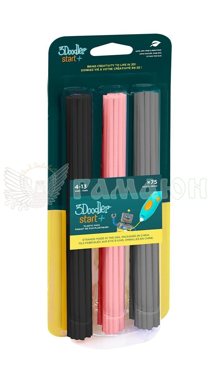 Набір стрижнів для 3D-ручки 3Doodler Start - МІКС (75 шт: чорний, рожевий, сірий)