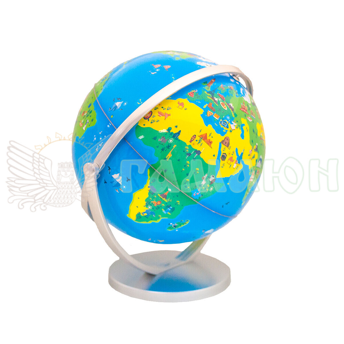 Orboot - чарівний глобус, який дозволить Вам подорожувати в далекі країни, не виходячи з дому! Завантажте безкоштовну програму Orboot (доступно в Google Play або App Store), виберіть одну з 7 доступних мов (у тому числі українську!) та почніть подорож! Пам'ятки, винаходи та тварини з'являються на екрані пристрою в 3D та стають частиною глобуса! Насолоджуйтесь можливостями доповненої реальності! Скануйте зірочки на глобусі, щоб побачити різні об'єкти в 3D і вирушайте в 4D-пригоди за допомогою голосових модулів: послухайте цікаві факти та розповіді про особливості кожної країни. Беріть участь у вікторинах, виконуйте цікаві завдання, слідкуйте за власним Око Парком, приєднуйтесь до Шифа та Скай, коли вони вирішують таємниці Orboot! Ідеальна S.T.E.A.M. іграшка для допитливих дітей, яка пробуджує їхню уяву! Глобус без меж та назв: досліджуйте та навчайтеся одним дотиком пальця! Глобус можна крутити на 360 градусів. Розширює кругозір дитини за допомогою різних категорій програми: тварини, пам'ятки, кулінарна майстерність, винаходи, культури, політичні карти. Досліджуйте за допомогою Orboot: 400+ зображень та 1000+ цікавих фактів та відкриттів. Знайдіть захоплюючі факти про Україну! Orboot - це глобус без назв та кордонів. Кольорове забарвлення використовується тільки для зручності візуального сприйняття. Набір входить: Глобус Паспорт Інструкція Буклет з наклейками Штамп Рекомендовано для дітей віком від 4 років.