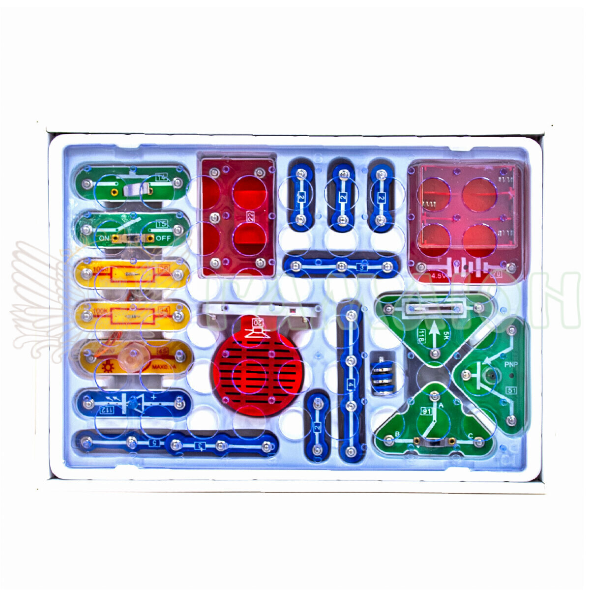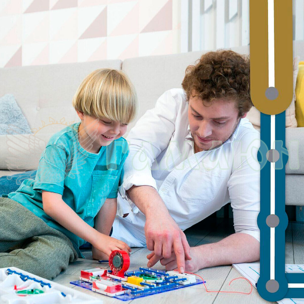 Конструктор дозволяє дитині своїми руками створювати світлові і звукові сигналізації, ліхтарик з трьома режимами, допоможе в знайомстві з логічними елементами, вивченні транзистора, регулюванні яскравості і гучності. Завдяки оригінальному способу з'єднання деталей Ви зможете домогтися швидкого і ефективного результату без використання паяння.