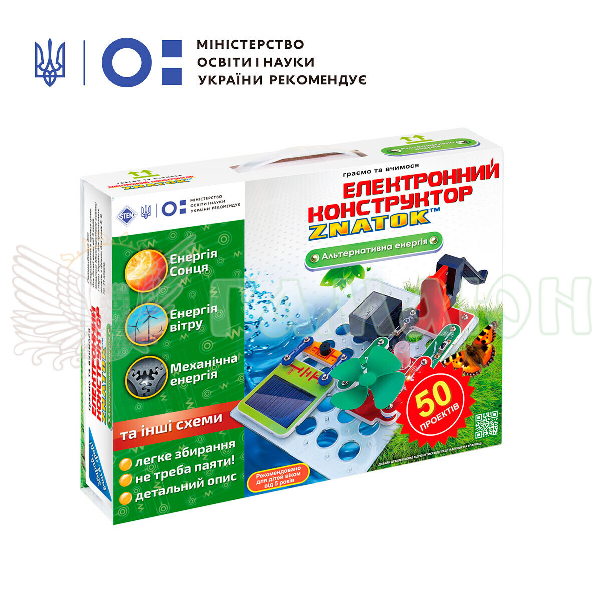 Електронний конструктор "Альтернативна енергія" безсумнівно сподобається допитливим хлопчикам 5 років! Електроніка оточує нас скрізь, це сучасні автомобілі, комп'ютери, фотоапарати, мобільні телефони та багато іншого. Але будь-який з цих пристроїв, для своєї роботи, потребує напруги живлення. І дуже важливо, щоб ці джерела енергії не псували довкілля. Конструктор "Альтернативна енергія" допоможе вивчити ці екологічно чисті джерела живлення та краще пізнати світ електроніки. Завдяки оригінальному способу з'єднання деталей ви зможете досягти швидкого та ефективного результату без використання паяння. Конструктор пройшов апробацію в школах та інших дитячих закладах та отримав високу оцінку фахівців. У комплект входить:1. 26 деталей2. посібник, за допомогою якого дитина зможе реалізувати 50 проектів, розділених на три основні блоки: - енергія сонця, - енергія вітру - механічна енергія. пам'ять.