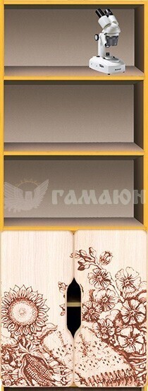 Шафа напівзакрита 2-дверна. Виготовлена з ламінованої ДСП: корпус 16 мм, фасад 18 мм. Задня стінка виготовлена з білої ламінованої ДВП товщиною 3 мм. Оклейка: ПВХ жовтого кольору товщиною 1 мм.