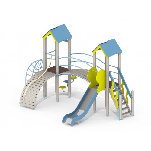 Комплекс розрахований для розвиваючих ігор дітей у віці від 3 до 6. Спеціальна перекладина нагорі гірки запобіжить падінню, також є бортики, розташовані по всій довжині спуску. Каркас виготовлений з натуральної деревини, тому безпечний для здоров'я дітей. Елегантний дизайн гармонійно впишеться в будь-який ландшафт, з його допомогою діти будуть більше проводити часу на свіжому повітрі.