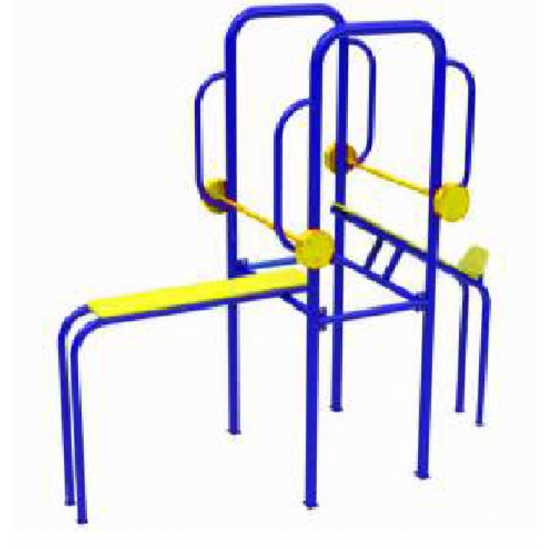 Вуличний тренажер призначений для занять фізкультурою на свіжому повітрі як дорослих, так і дітей старше 12 років. Розрахований на великі навантаження. Дозволяє тренувати косі м'язи живота і спини.
