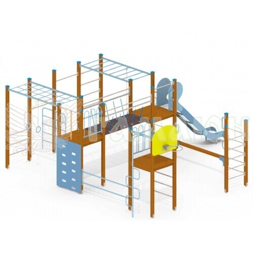 Складається з: Рукохід 2 шт., Майданчик без даху 3 шт., Гірка 1 шт., Місток 1 шт., Турнік 2 шт., Шведська стінка 4 шт., Місток на ланцюгах 1 шт., Дошка альпініста 1 шт., Баскетбольне кільце 1 шт.
