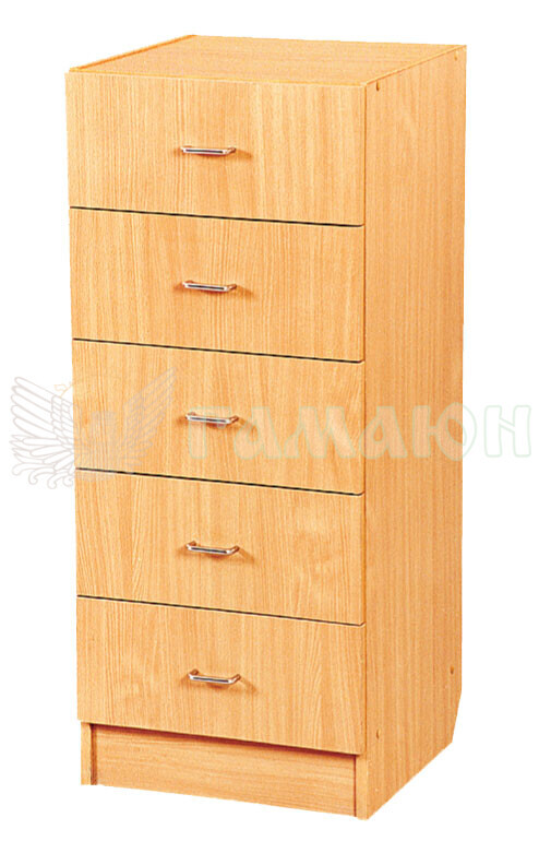 Конструктивні складові секції: фасади, кришки верхня і нижня, боковини і шухляди виготовлені з ламінованого ДСП товщиною 16мм, класу емісії Е1, обклеєної по торцях протиударною кромкою ПВХ товщиною 0,5 мм для полиць. ДСП колір “Бук світлий”. Для кріплення використовується якісна фурнітура. Задня стінка – ДВП.