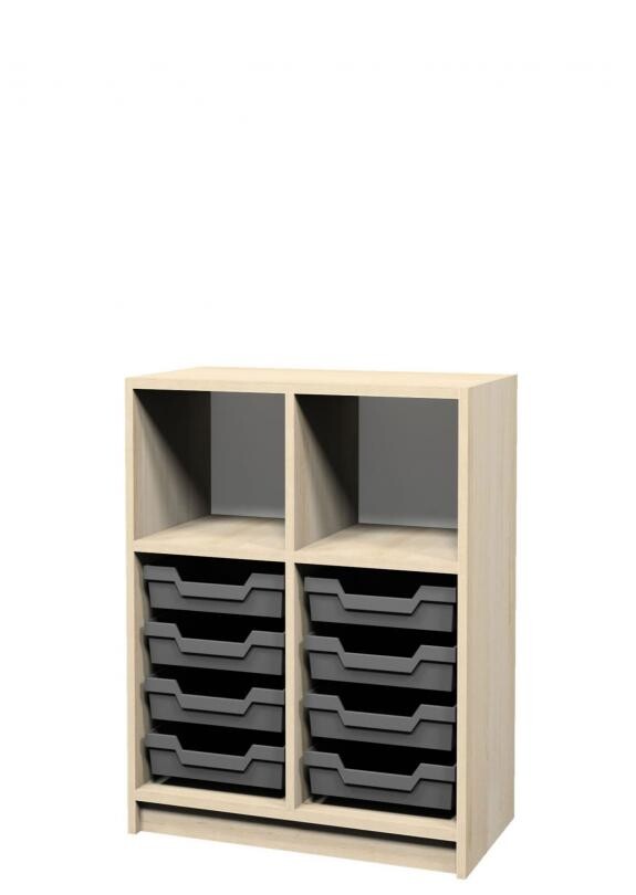 Опис виробу: Шафа призначена для комбінованого зберігання навчальних матеріалів, канцелярії, наочних засобів та особистих речей учнів або викладачів. Відкрита частина забезпечує швидкий доступ до необхідного вмісту, а закрита — приховує речі від стороннього погляду, створюючи порядок в освітньому середовищі.  .