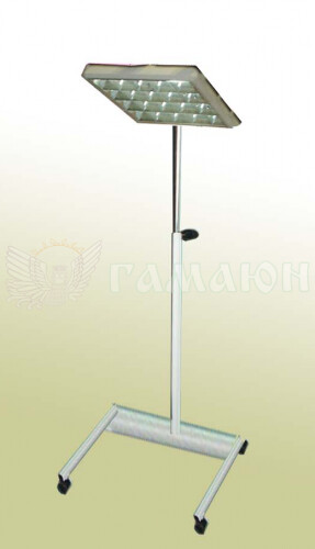 Висота опромінювача регулюється з допомогою телескопічного механізму. Для зручності переміщення опромінювач оснащений колісними опорами.