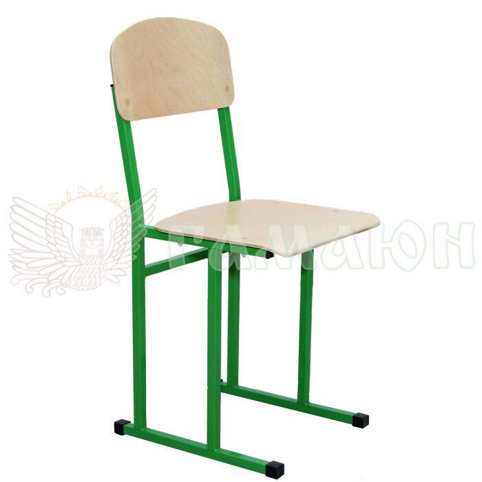 Сидіння та спинка виготовлені з гнуто-клеєної фанери (товщиною 9-10 мм) та вкриті безкольоровим лаком на водній основі. Кути сидіння і спинки та передня крайка сидіння мають радіус заокруглення для запобігання травмування. Каркас стільця виготовлено з квадратної труби 20х20х1,2 мм з нанесенням порошкової фарби. Спинка та сидіння до каркасу кріпляться гвинтами та гайками. На торцях каркасу закріплені пластикові наконечники, які запобігають травмуванню учнів та пошкодженню підлоги.