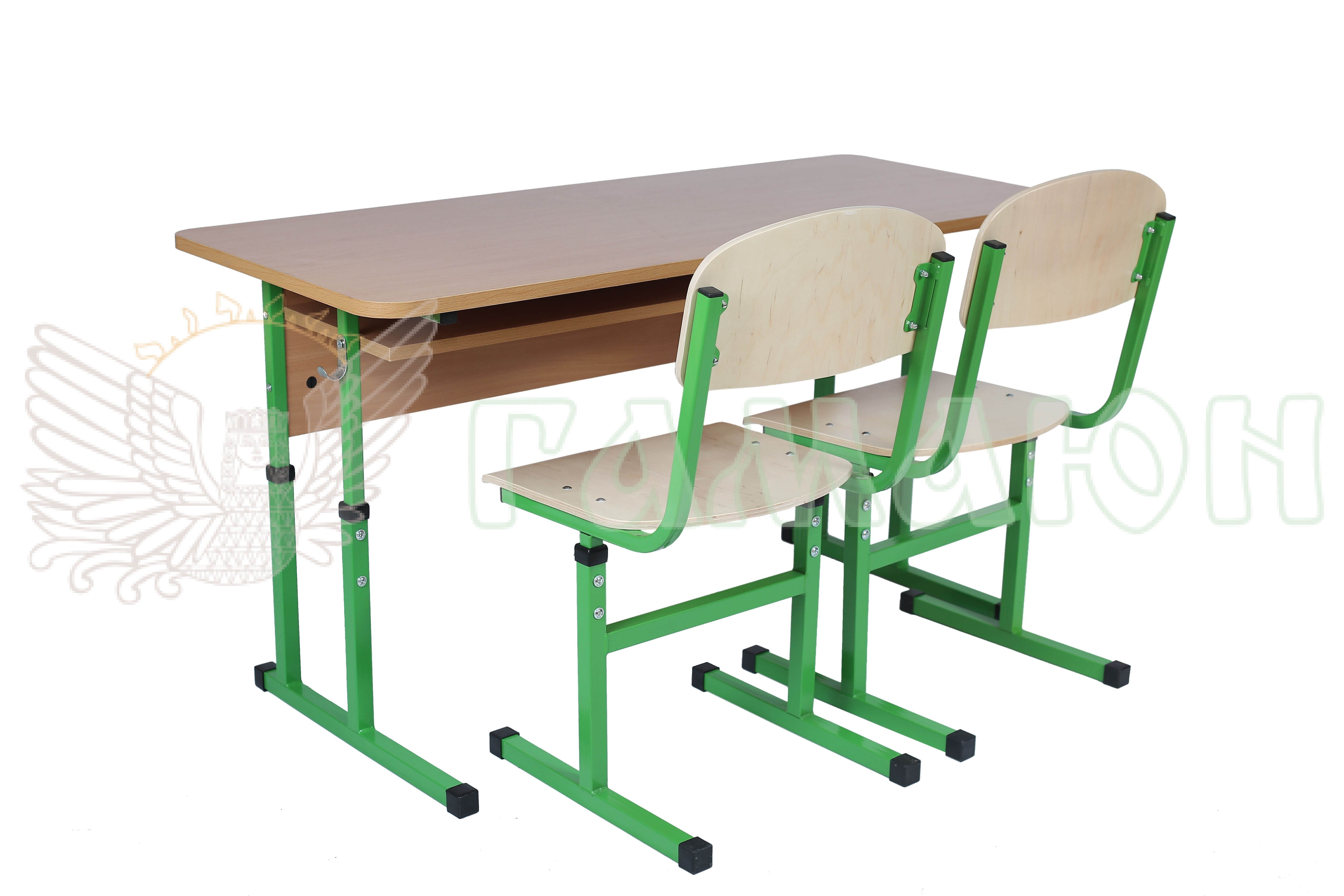 Комплект стіл учнівський 2-місний з полицею, №4-6 + стілець Т-подібний, №4-6