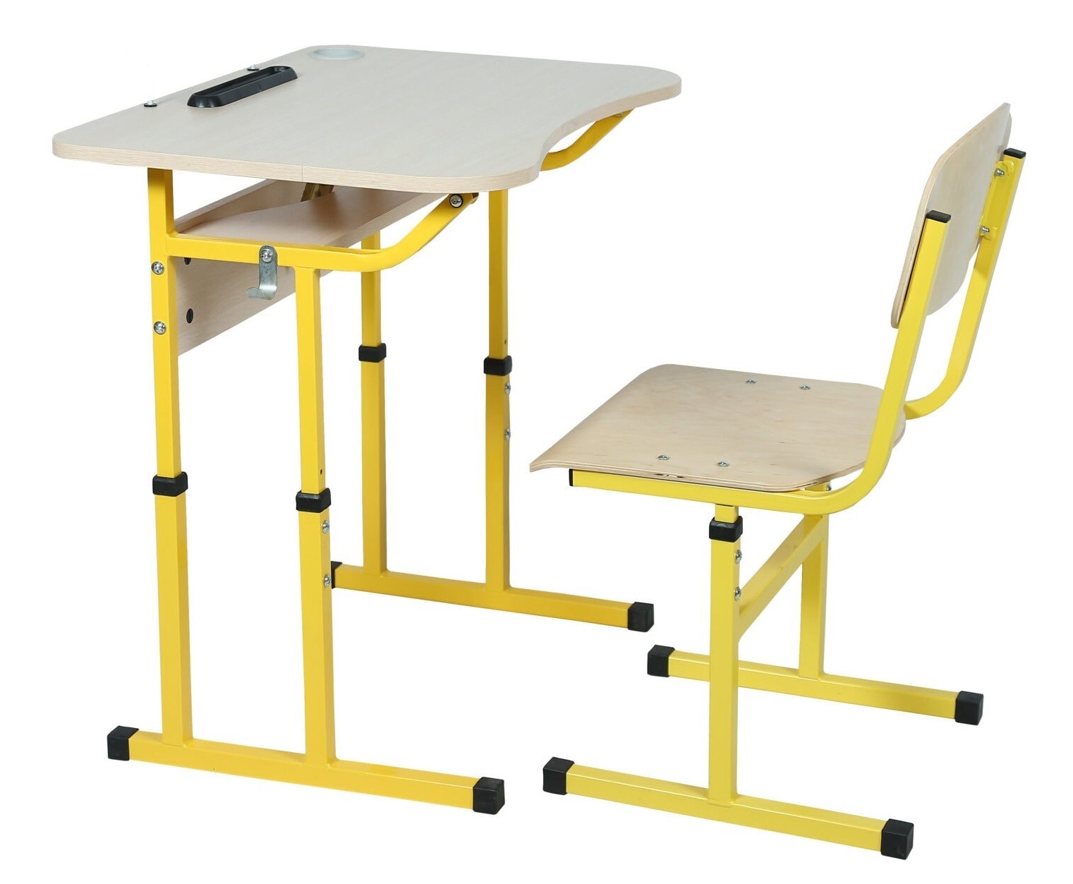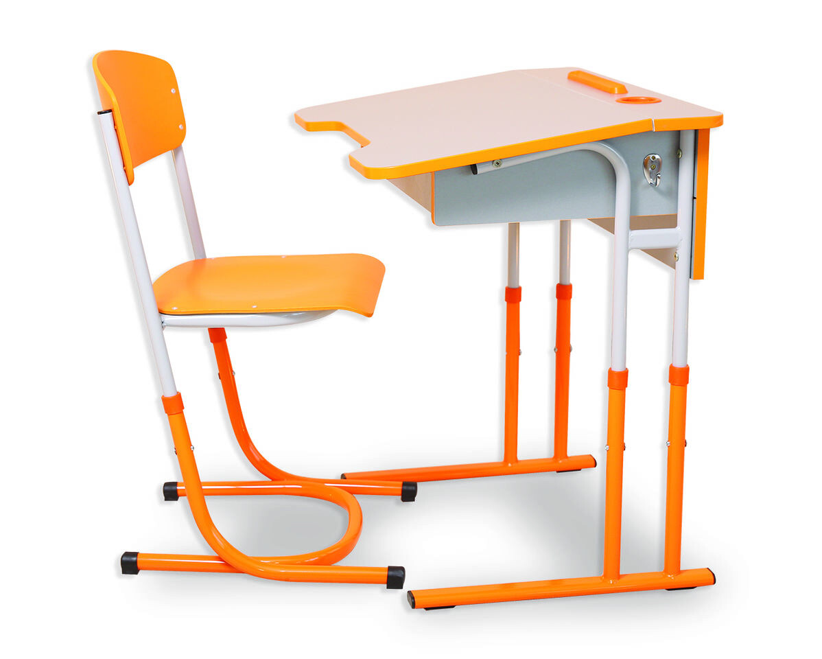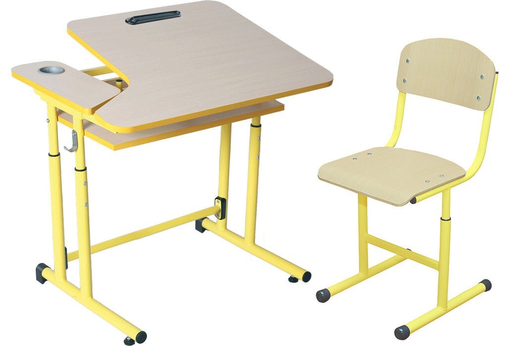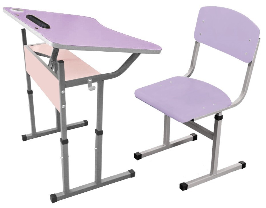 Комплект №3-6 Стіл 1-місний з регулюванням кута нахилу стільниці + стілець Т-подібний (квадратна труба)