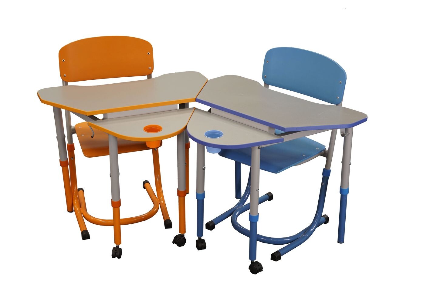 Комплект №3-5, №4-6. Стіл 1-місний мобільний з рег. кута нахилу стільниці + стілець