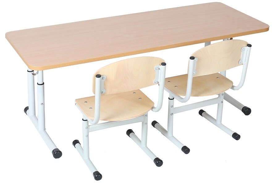 Комплект дитячий №1-3 Стіл 2-місний без полиці + стілець Т-подібний (квадратна труба)