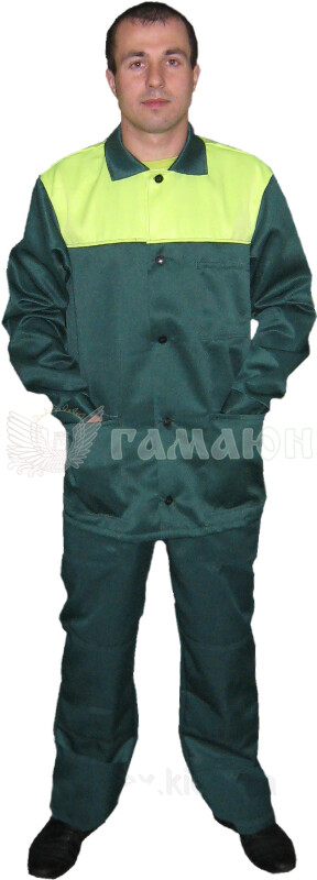 Костюм робітник тк. грета зелений з лимонною кокеткою