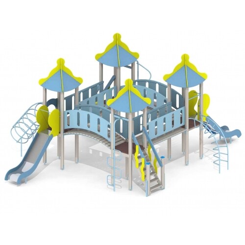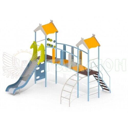 Ігровий комплекс розрахований для дітей віком 3-6 років. Конструкція складається з двох веж з дахами, з'єднаних між собою містком. Також є три види сходів і гірка. Всі майданчики для безпеки дітей обладнані перекладинами, а гірка – бортиками висотою 10 см.