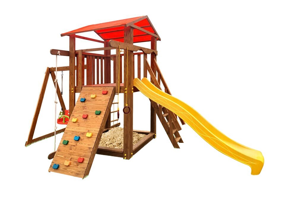 Складається з: Майданчик з дахом 4 шт., Гірка 2 шт., Сходи 1 шт., Гвинтові сходи 1 шт., Шведська стінка 1 шт., Радіальний міст з канатом 1 шт., Тунель 1 шт., Сходи зі скобами 1 шт ., Дугові сходи 1 шт., Дошка альпініста 1 шт., Рукохід 1 шт., Місток на ланцюгах 1 шт., Місток 2 шт.