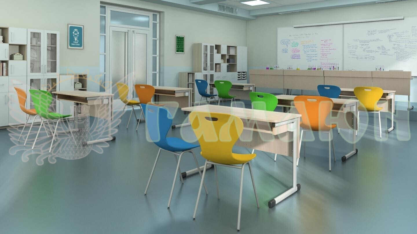 Металеві частини стола виготовляються з плоскоовальних труб розміром 50х30х1,2 мм, 30х15х1,2 мм та 38х20х1,2 мм, а також мають захисне декоративне покриття – емаль порошкова. На торцях каркасу закріплені пластикові наконечники, які запобігають травмуванню учнів та пошкодженню підлоги.