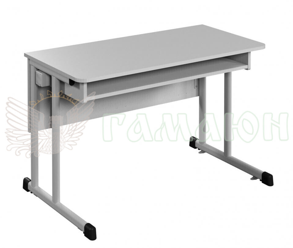Стіл учнівський 2-місний лабораторний на плоскоовальній трубі з розетками