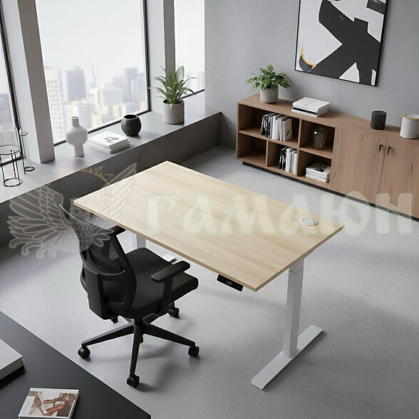 Конструкція каркаса містить 2-ступеневі колони, які дозволяють рівномірно піднімати та опускати стільницю в широкому діапазоні висот — від 718 мм до 1223 мм.