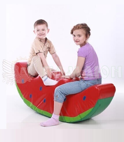 Гойдалка призначена для хитань однієї дитини. Гойдалка «Кавунчик» сприяє розвитку рухової активності у дітей, стимулює вестибулярні функції, зміцнює м’язи. Зроблена качалка з щільного поролону і обтягнута м’якою, приємною на дотик ПВХ тканиною, яка, до того ж, легко миється.