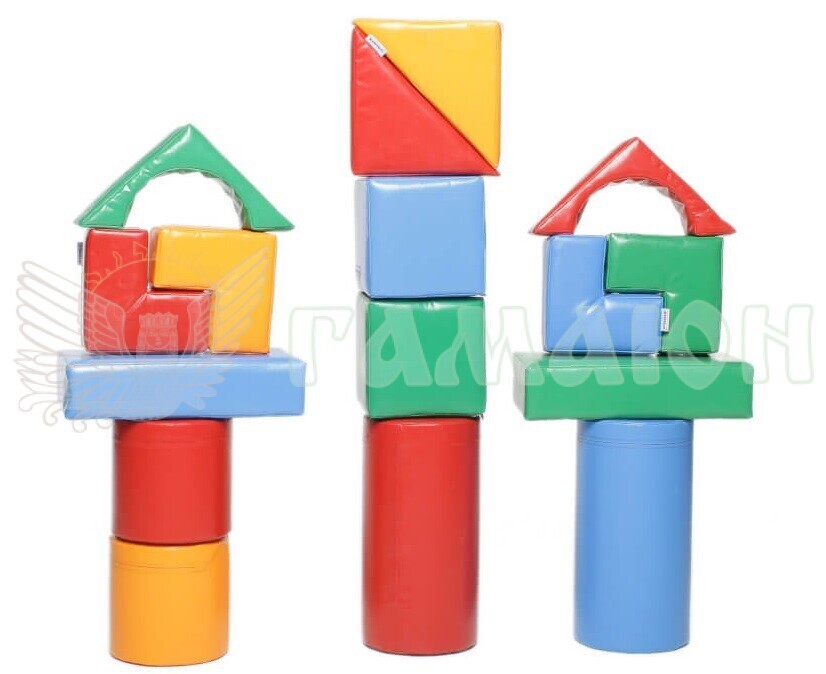 Конструктор «Будівельник-7 Міні» - підлоговий набір складається з 16 геометричних м’яких модулів, 7 фігур.