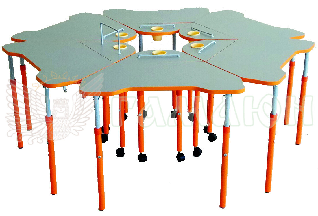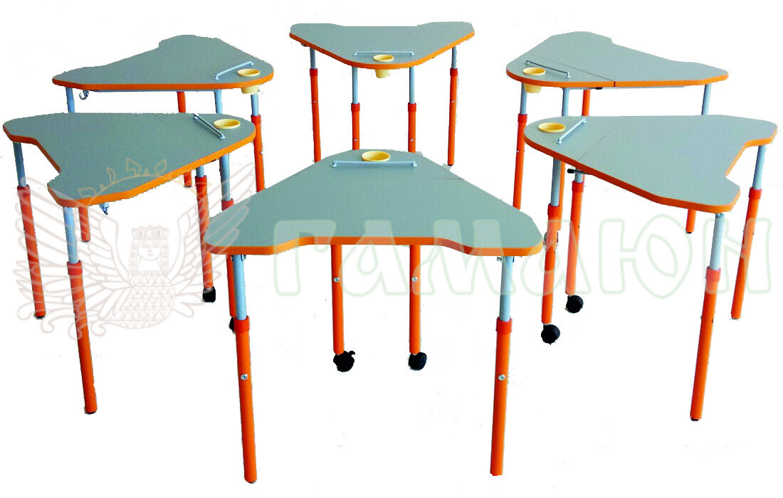 Стільниця складається з двох частин – рухомої та нерухомої. На нерухомій частині встановлюється «стаканчик» для канцелярських приладь. Стільниця виконана з ламінованого ДСП товщиною 16 мм, класу емісії Е-1, та личкується крайкою ПВХ товщиною не менше 2 мм. Рухома частина стільниці, зі сторони учня, має виріз, що сприяє правильному розміщенню учня, та запобігає виникненню сколіозу. У верхній частині каркасу стола кріпиться гачок для портфеля.