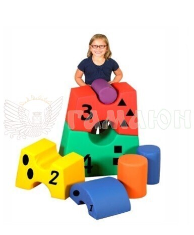 Модуль складається з 7 взаємопов’язаних елементів, що утворюють вежу. Ці універсальні м'які блоки розвивають моторику, майстерність, творчість, уявлення з точки зору проектування! Чохол – ПВХ, наповнювач – поролон.