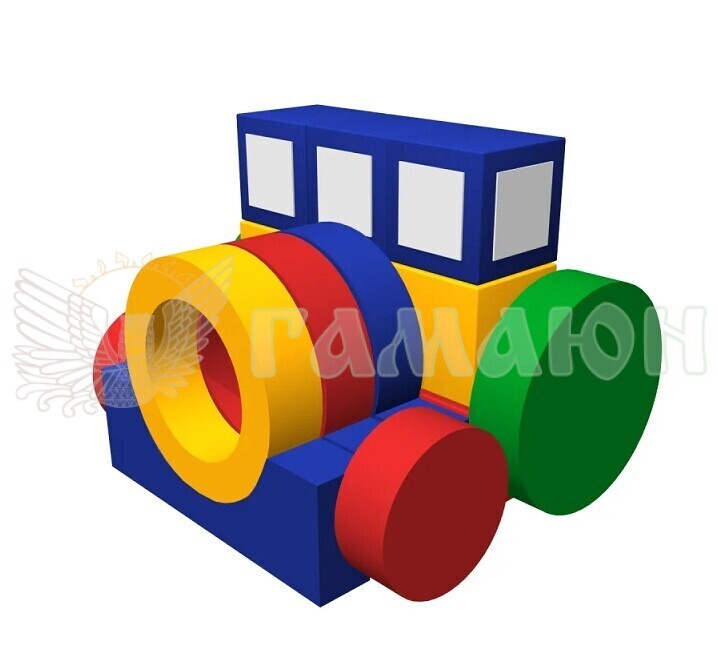 Кольорові м'які куби різної форми легко збираються в «трактор», а також інші ігрові об'єкти. Навчає геометричним формам, квітам і розмірами. Розвиває фантазію.