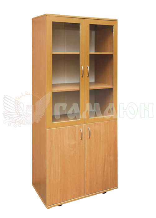 Шафа книжкова зі скляними дверцятами в рамочному фасаді (без антресолі)