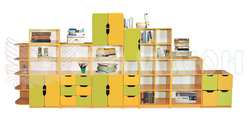 Стінка призначена для умеблювання садочків та молодшої школи, можлива різнопланова комбінація елементів, є функціональною та призначена для зберігання дидактичного матеріалу, книг, папок, особистих речей дітей. Всі  дверцята заокруглені  та обклеєні крайкою - для запобігання травмування та пошкодження одягу. Кольорові рішення мають приємні відтінки для сприйняття.