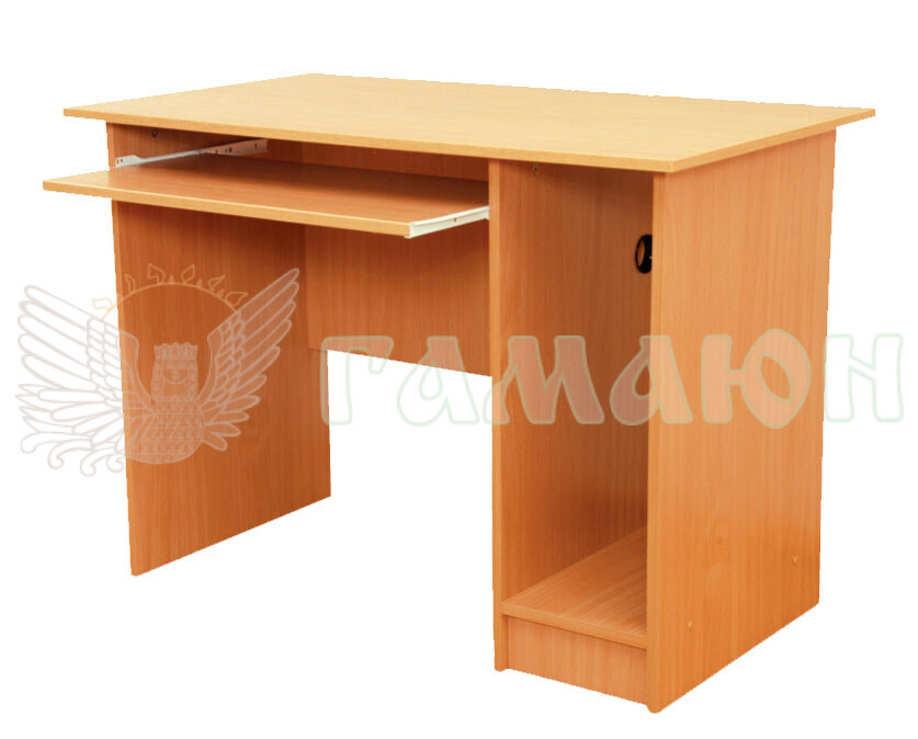 Стіл складається з накладної кришки прямокутної форми, двох бокових стінок, полиці під клавіатури встановленими на металевих роликових напрямних та місцем під системний блок справа. Всі елементи столу виготовляються з ДСП товщиною 16 мм, оздобленої синтетичним шпоном з текстурою дерева («бук»). Торці кришки личкуються крайкою ПВХ товщиною 2 мм, торці інших елементів – крайкою ПВХ товщиною 0,45-0,50 мм.