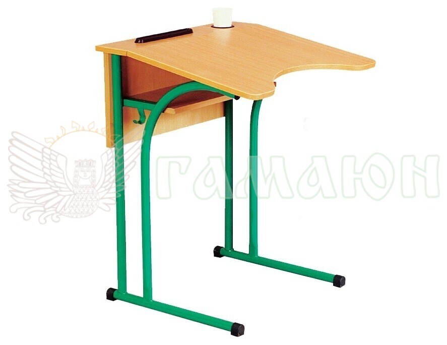 Стільниця, полиця та екран до столу виготовлені з ламінованого ДСП товщиною 16 мм світлих кольорів. Кромка ПВХ товщиною не менше 2 мм на стільниці, та не менше 0,45-0,5 мм на всіх інших деталях. Горизонтальна кришка має отвір для стакану з правої сторони від учня. Також монтується пенал з поліетилену. Похила кришка має виріз з боку учня радіусом 300 мм та глибиною 85 мм. Кути заокруглені радіусом не менше 20 мм.